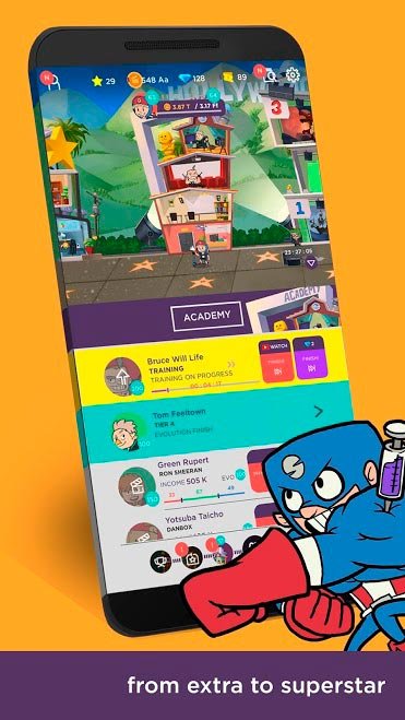 Есть прекрасная возможность воплотить все свои мечты в реальность с помощью такой увлекательной игры. Здесь каждый может превратиться в грамотного режиссера и пройти кучу уровней. Вы можете собирать в команде Hollywhoot: Idle Hollywood Parody огромное количество разнообразных звездных актеров и костюмов для них, чтобы потом снять шедевр и поделиться им со своими друзьями. Игроки могут сделать самую высококачественную пародию на Голливуд и показать ее всему миру. Собирайте огромное количество символов для улучшения качества актеров и их костюмов. Попробуйте выиграть все достижения и соберите их в собственной коллекции. Играя в Hollywhoot: Idle Hollywood Parody можно будет поднять свой рейтинг среди остальных режиссеров и стать самым популярным. Завоевывайте авторитет и поднимайтесь как можно выше. Сотни разных звезд, костюмов, декораций и десятки арен будет доступно для продвижения.Звездная мобильная пародия Hollywhoot: Idle Hollywood Parody