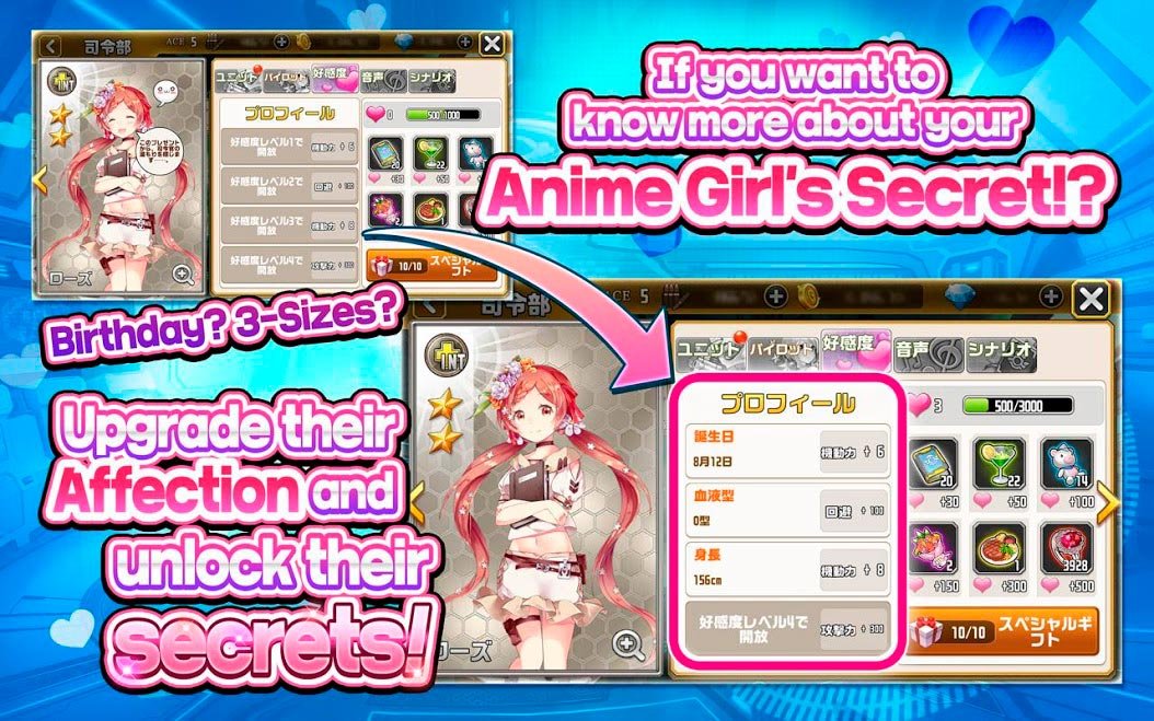 Собирайте у себя в большой команде самых красивых девочек, нарисованных в стиле качественного японского аниме. Все они ждут не дождутся когда их новый командир отдаст очередной приказ и установить новые цели перед ними. Попробуйте принять участие в этих сюжетных приключениях Поцелуй Богини прямо сейчас и участвуйте в сотнях увлекательных и веселых уровней. Специальный отряд, которым будет управлять игрок, состоит только из красивых девочек, и они будут сражаться на поле боя, что довольно трудно представить. Почувствуйте, как будет захватывать дух от такой остросюжетной ролевой игры. Действуйте в напряженных поединках по всему миру и захватывайте первые места. Вы сможете взять управление над огромной роботизированной техникой, и они будет сражаться на полях каждый день. Став участником Поцелуй Богини игроки смогут попробовать облегченный вариант управления мобильными РПГ, потому что оно осуществляется в несколько касаний.