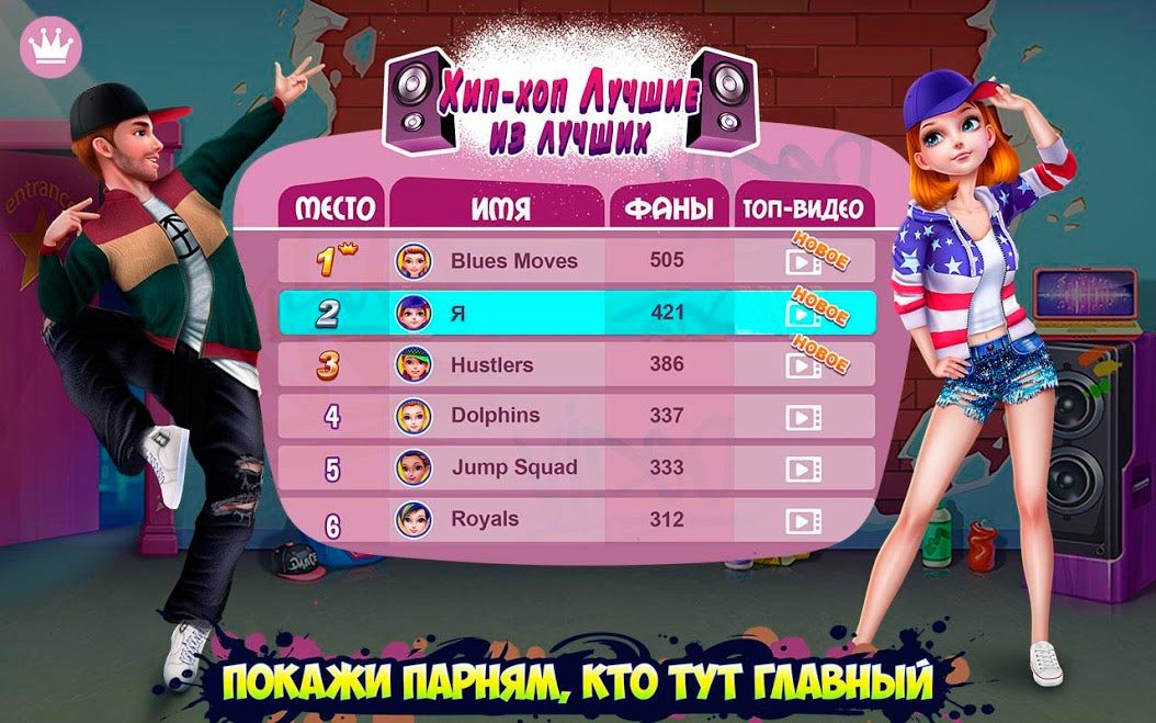 В современных и зажигательных танцах сойдутся одновременно и парни и девушки. Игроку нужно будет первым делам выбрать, на какой стороне он выйдет на танцпол и попробует победить. Если ты девушка, то можешь прямо сейчас получить на свой смартфон Хип-хоп битва: девушки VS парни и принять участие в танцевальных соревнованиях против парней. Для этого станет доступен самый огромный город и в нем есть множество мест, на которых станет возможно танцевать и набирать больше очков. Покажите парням насколько красиво вы танцуете. Естественно кроме разученных танцевальных комбинаций героине нужен будет самый современный наряд, и он должен полностью соответствовать уличному ритму. Собери в Хип-хоп битва: девушки VS парни самую профессиональную команду из уличных танцоров, чтобы потом участвовать в соревнованиях. Думай всегда и везде только лишь о победе в соревнованиях. Отдайся ритмам полностью и выплесни на фанатов свои яркие танцы.