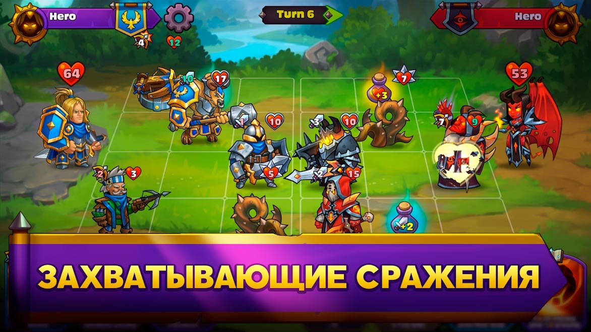 Благодаря пошаговой тактической системе пользователи смогут почувствовать, как захватывает дух от сражений в настолько уникализированной системе. В вашей армии может оказаться множество самых разных героев и монстров, обладающих своими персональными характеристиками. Больше сотни карт героев будет доступно всем пользователям Heroes of Magic: Card Battle RPG и для повышения мощи нужно продумать собственную комбинацию. Выигрывайте очки опыта и прокачивайте своих героев, чтобы они достигли максимального уровня.