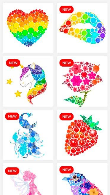Раскрась рисунки стразами в No.Diamond – Раскраски по номерам