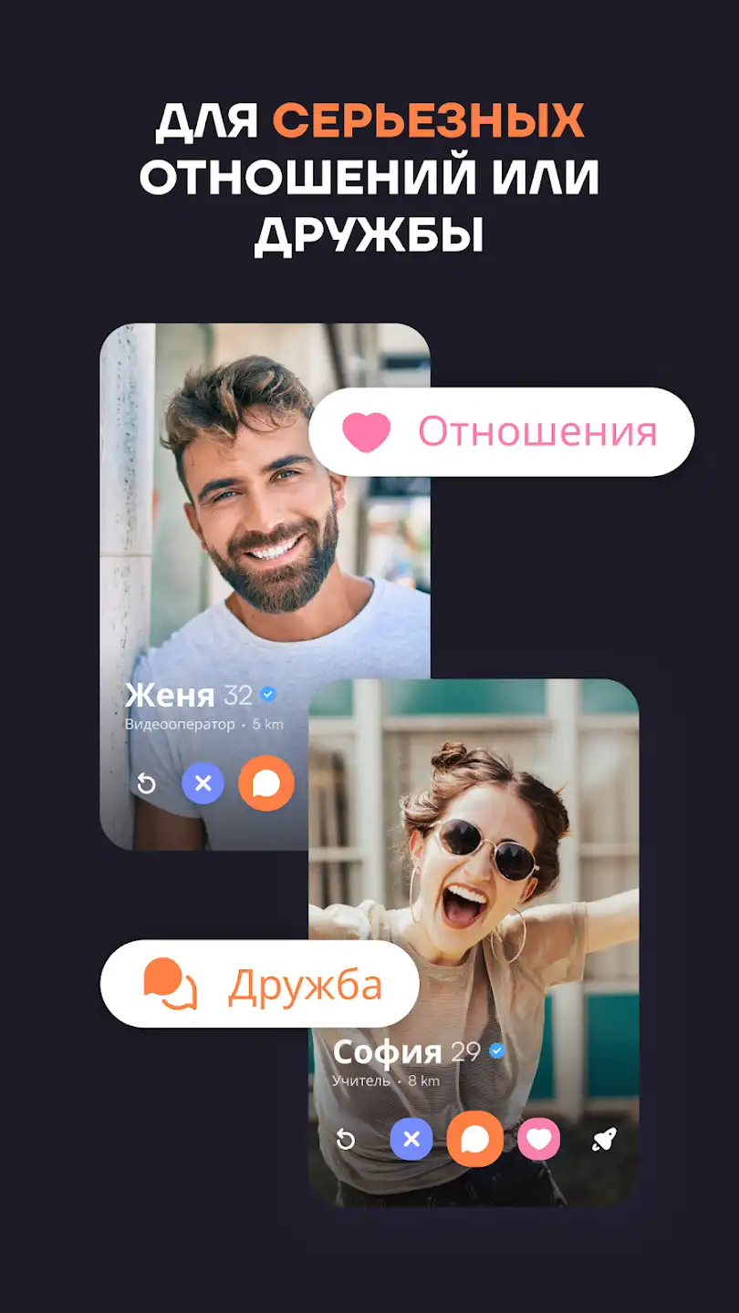 Никаких обязательств от свиданий это главная уникальность приложения. Проведите этот вечер вместе с красивым мужчиной или страстной дамой по обоюдному желанию. Благодаря возможностям Встречи без обязательств и одинокие люди – JOYRIDE пользователи не будут переживать об отсутствии партнера и смогут легко его выбрать. Живите так, как вам это нравится, ведь для этого есть даже специальное приложение. Простыми кликами и смахиваниями листайте анкеты или фотографии и выбирайте себе идеального партнера простым кликом. Ему придет ваша оценка, и тогда можно будет завязать первый разговор о свидании.