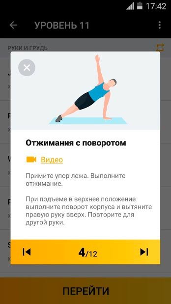Выбирайте, какую часть тела вы будете накачивать прямо сейчас. Можно выбрать для накачивания свои руки, мышцы груди, пресса, ног или плеч со спиной. Даже если вам не совсем понятно как правильно выполнять определенное упражнение, тогда есть реальная возможность посмотреть достойную анимацию или видеоролик. Так вы сможете быстро научитесь выполнять упражнения и извлечете из них максимум возможностей. Десятки разнообразных упражнений будет доступно вместе с Тренировки дома для мужчин: силовой фитнес и все они сделаны настоящими профессионалами. Планка, отжимания, выпады и многое другое теперь вы будете выполнять каждый день.