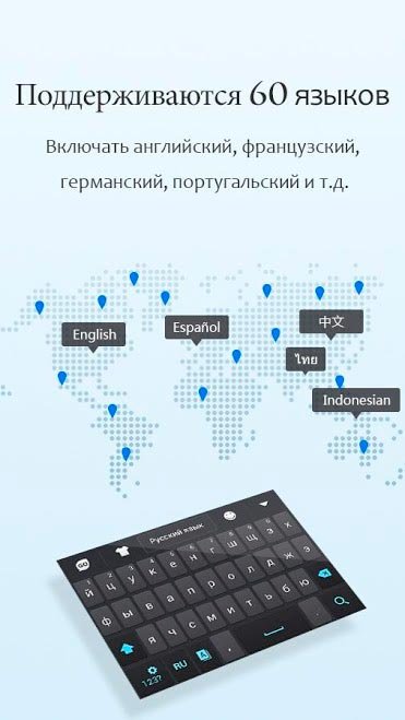 В этой уникальной мобильной клавиатуре присутствует функция умной правки ошибок, благодаря чему пользователь будет меньше допускать ошибок в словах, напечатанных на телефоне. Очень удобно сделана сама раскладка всех клавиш на мобильной клавиатуре, а также GO клавиатуры позволяет работать на более чем шестидесяти разных языках со всего мира. Кроме того можно спокойно персонализировать собственную клавиатуру, ведь для этого придумано уже больше десятка тысяч тем. Пользуйтесь всеми функциями и наслаждайтесь вводом слов и букв на такой клавиатуре. GO клавиатуры совместима практически со всеми мобильными устройствами, поэтому пользоваться ей сможет каждый. Больше восьми сотен разнообразных эмотиконнов будут постоянно обновляться, и они будут доступны всем пользователям. Обязательно персонализируйте собственную клавиатуру ведь столько много тем понравятся каждому. Выбирайте нужную вам категорию, присматривайтесь и наслаждайтесь использованием.Удобный ввод информации GO клавиатуры