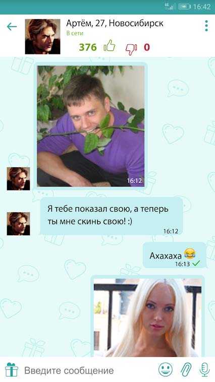 Через приложение ФЛИРТОГРАМ легко заводить беседу, ведь тут всегда найдутся предрасположенные к ней люди. Здесь каждому участнику после регистрации сразу же предлагаются сотни анкет на выбор. Изучайте профили участников, листайте фотографии, выставляйте оценки и ждите ответа. Когда вам отвечают взаимностью, можете начинать переписку и знакомиться поближе. Вы будете перенаправлены в особый чат, где и начнутся увлекательные разговоры. Там всегда есть возможность отправить собеседнику милый подарок, выбрав из множества вариантов.