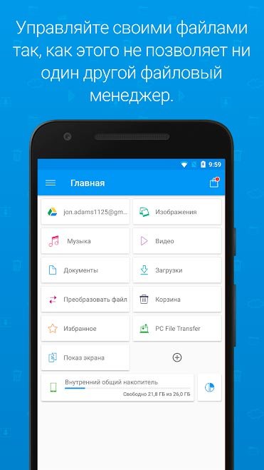 Интуитивный и понятный интерфейс позволяет работать с файлами разного типа по всему миру и управлять ими с помощью масштабного набора функций. Используйте конвертер для изменения более чем тысячи разных типов файлов и переделывайте их в любые нужные вам форматы. File Commander - File Manager/Explorer действительно очень мощный и нужный инструмент, который обязательно окажется полезным на каждом мобильном устройстве. Очень легко обменяться файлами с напарником, ведь это происходит всего лишь в пару кликов. Разделение файлов по соответствующим им категориям делает работу и пользование ими очень удобным. Теперь пользователи могут получить доступ ко всем материалам со своего мобильного.