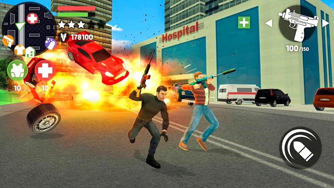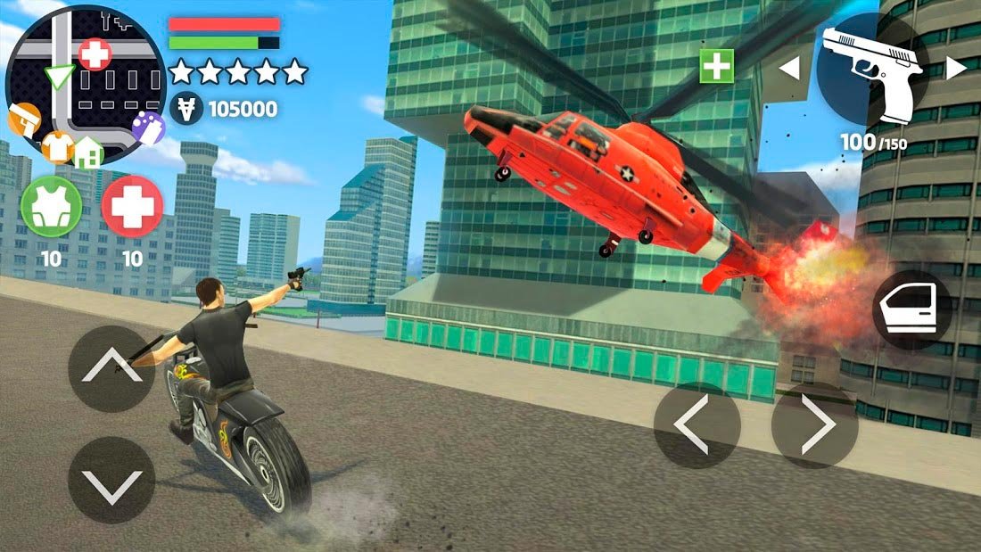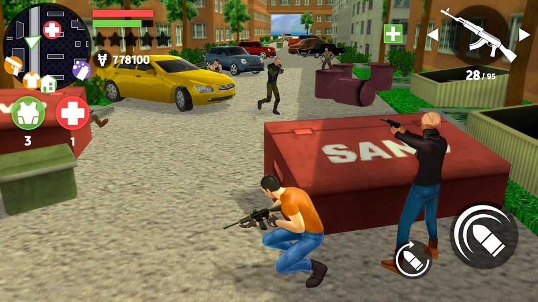 Не нужно вступать в банду, потому что вы должны создать ее самостоятельно. начинайте исследовать этот масштабный и полностью свободный город мобильного экшена, где станет возможно воровать и совершать грабежи. Воруйте машину, стреляйте в бандитов и наслаждайтесь полностью жизнью криминального авторитета. Игровой процесс Real Crime Auto: Vice City сделан специально для тех, кто без ума от экшенов в подобном жанре. Главные герои этого криминального боевика попытались ограбить местный банк, и это задание закончилось очень жесткими проблемами, ведь на место прибыли копы. Однако бандитам удалось быстро убежать и скрыться с места преступления, при этом все награбленные деньги остались при них. К сожалению все закончилось не совсем счастливо уже после ограбления, потому что теперь участников банды постоянно преследуют другие бандиты и главное копы. Именно поэтому в Real Crime Auto: Vice City нужно всегда оставаться на чеку и следить за своей безопасностью, потому что в любой момент могут совершить нападение.Криминальный город и свобода в Real Crime Auto: Vice City