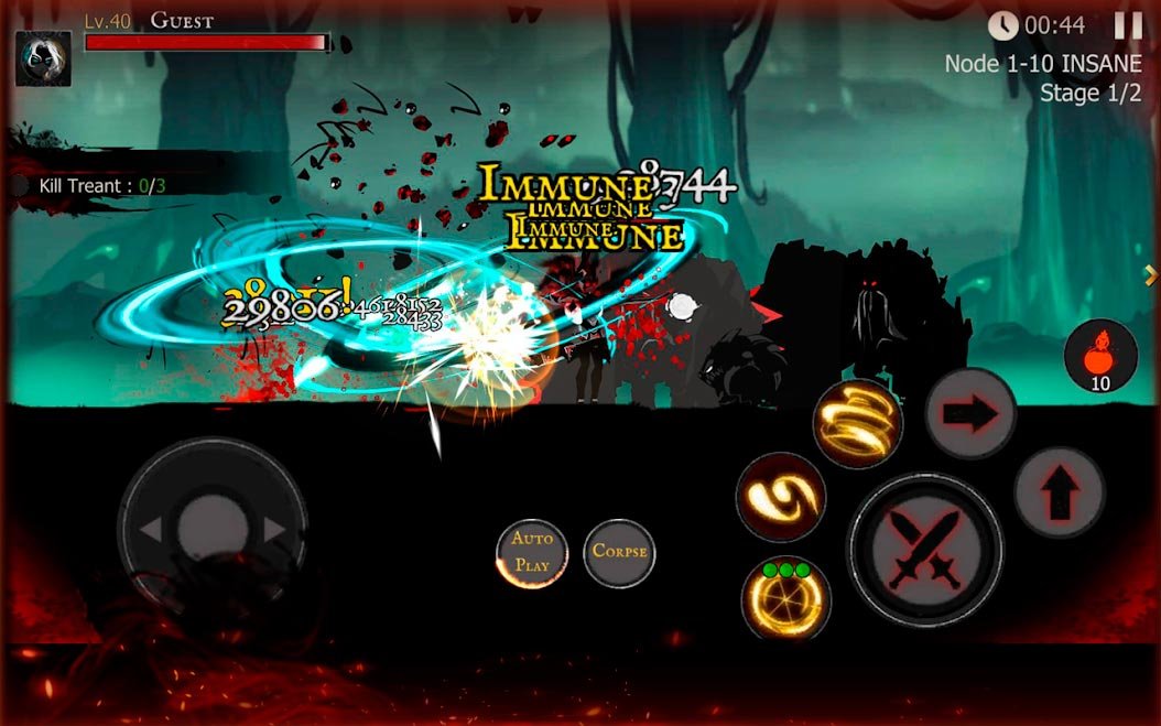 Полностью автономный игровой процесс, в который можно будет играть в любом месте. Игроки обязательно должны попробовать принять участие в этих кровавых битвах, но перед этим нужно запастись опасным оружием. Уничтожайте всех своих врагов и продвигайтесь как можно дальше. Вам потребуется очень много опыта, чтобы пройти все уровни и прийти к конечному результату. Shadow of Death: Dark Knight - Stickman Fighting обладает собственной таинственной историей, с которой игрок сразу же познакомиться. Все начинается в городах Света на территории огромной Авроры. Эти земли были благословлены Богами и поэтому злые силы всегда боялись захватывать ее. Лютер был хладнокровным правителем и никогда не давал возможности своим врагам расслабиться. Король в Shadow of Death: Dark Knight - Stickman Fighting был хранителем огромного количества древних реликвии, способных придать огромное количество сил всем воинам, но так продолжалось недолго. После некоторых исследований король вовсе исчезает и больше его никто не видел.
