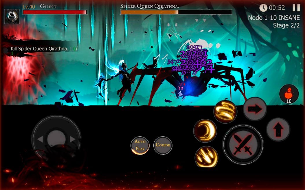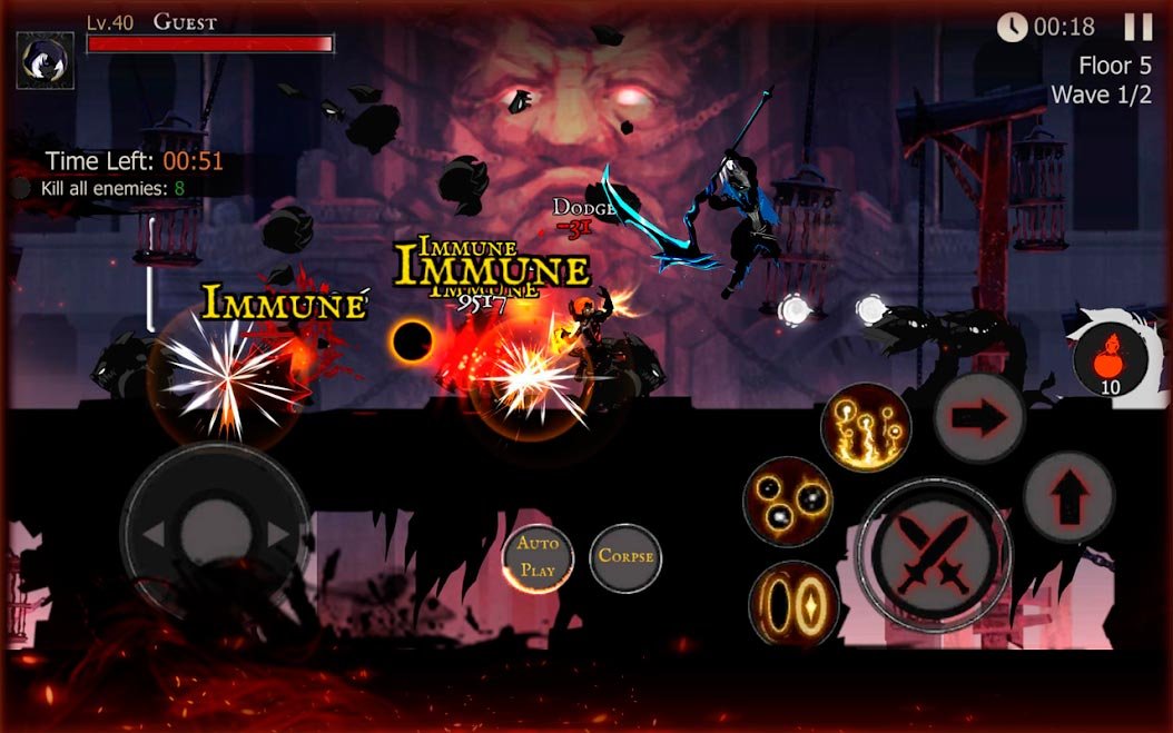 С этого момента на Авроре начинается очень злое и темное время, которое превращает город в апокалипсис. Вскоре появляется молодой и сильный рыцарь Макс, который прошел достаточно войн, чтобы набраться опыта. У него есть много суперспособностей, которые удалось получить после исследований короля Лютера. Теперь игроков в Shadow of Death: Dark Knight - Stickman Fighting ждут эпические войны и постоянные сражения с невероятным количеством монстров и врагов. используйте смертоносное оружие, магию и заклинания, чтобы справиться с проблемами.