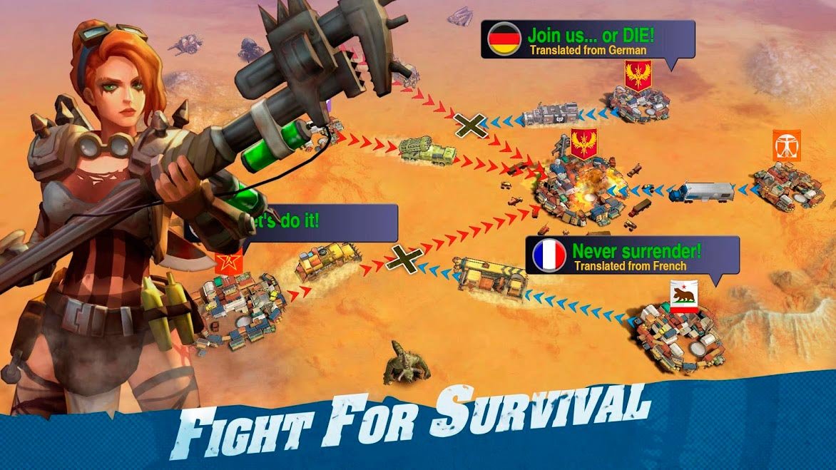 Игровой процесс начнется от простого пустыря, на котором игрок начнет строить первые объекты и здания. Их можно будет развивать и улучшать уровень, пока цивилизация не сможет развиться до невероятных масштабов. Отправляйтесь на пустошь и там встречайтесь со злыми героями, такими как наемники, сошедшие с ума ученые и даже монстры мутировавшие после взрыва. Поэтому когда выходите за пределы своего государства в Doomwalkers - Survival War не забывайте про оружие, без него выжить будет крайне трудно. Подключившись к многопользовательскому режиму игры, вы сможете общаться со своими друзьями и узнавать много нового и полезного для выживания.