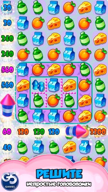 Больше сотни самых веселых уровней станет доступно игрокам вместе с такой занимательной головоломкой. Собирайте огромное количество вкусных конфет и печенья вместе, чтобы из них получались комбинации, которые потом помогут в прохождении миссий. Постоянно открывайте новые магазины в Супермаркет Мания - Три в ряд и уже там снова проходите уровни, которые будут уже немного сложнее. Придумывайте новые линии, комбинируйте и выигрывайте бонусные предметы. Они помогут вам в продвижении по игре и улучшении своих навыков. Чем дальше игрок пройдет, тем больше супермаркетов сможет открыть и получать с них прибыль. Главная героиня по имени Никки решилась вернуть обратно в Тинзел-таун, и там она будет заниматься развитием своих супермаркетов. Помогать ей в Супермаркет Мания - Три в ряд предстоит вам и для этого придется бросить максимум сил. Помогать в прохождении будут специальные бонусы и подсказки, ведь действительно иногда без них нереально справиться.
