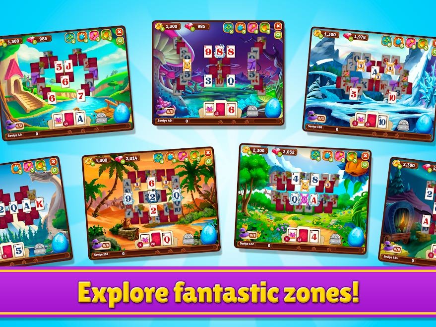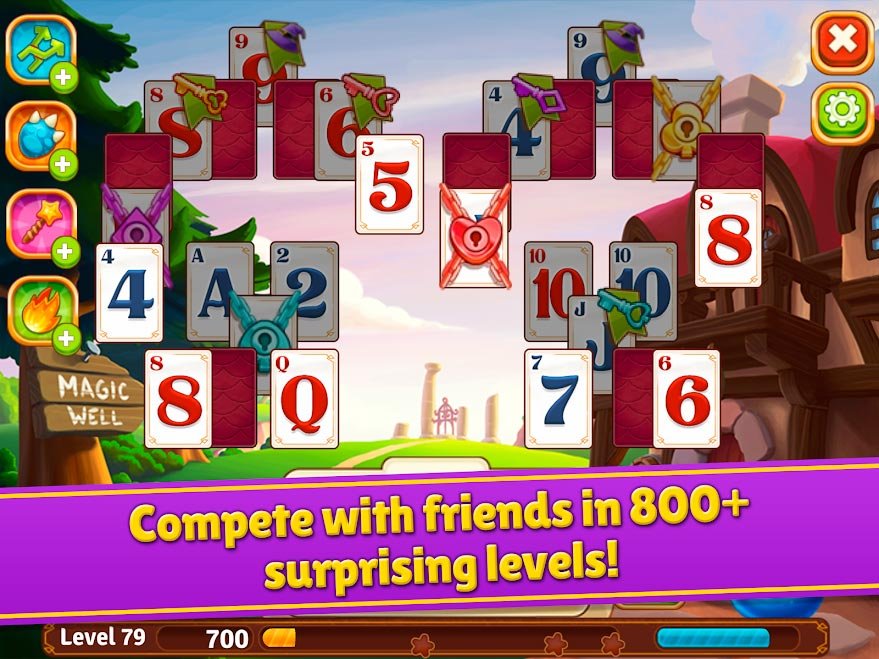 Игроков жду удивительные приключения в волшебном лесу, который полон героев и персонажей. Здесь есть множество потрясающих мест, в которых есть возможность просто отдохнуть или найти полезное для продолжения. Обязательно когда будете участником Solitaire Story - Tri Peaks остановитесь возле водопада Драконов и там просто расслабьтесь. Побывайте в самых разнообразных местах этого магического леса и откройте много новых тайн, решая головоломки в стиле солитера. Игра понравится любителям этой карточной игры, ведь она действительно затягивающая. К тому же эта сделана в красивом оформлении и с сюжетной фантастической линией. Огромное количество локаций, где нужно собирать карты в солитере и каждая по-своему шикарная и неповторимая. Выбирайте, как будете играть дальше и собирайте карты по новой стратегии. Вам предстоит пройти достаточно сложных уровней в Solitaire Story - Tri Peaks, чтобы полностью завершить приключение. Есть несколько игровых режимов, среди которых замки, стандартный солитер, паук или пирамиды. Вы можете сыграть в любом и пройти кучу уровней.
