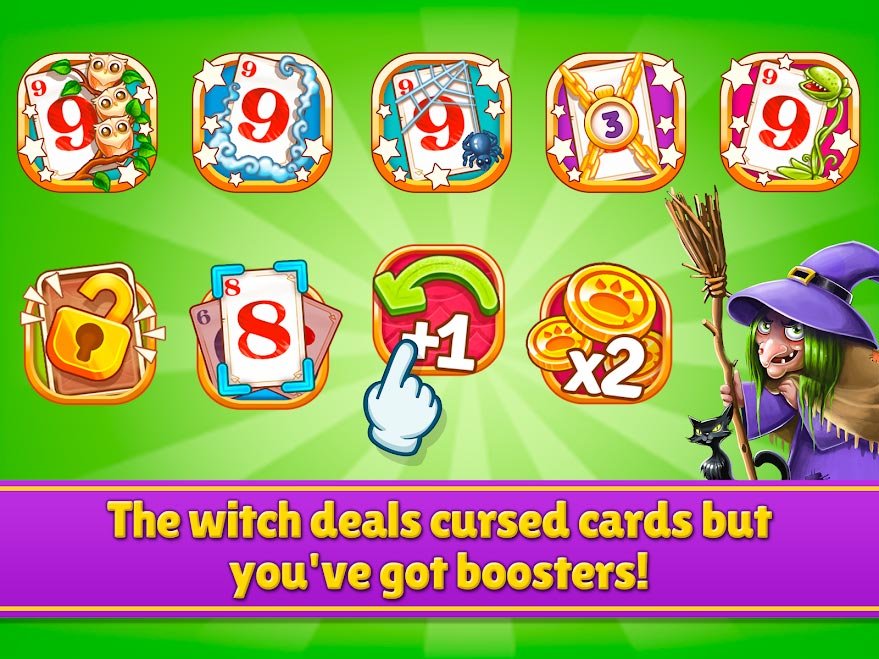 Сразитесь в логической битве с коварной и злобной ведьмой. Она будет стараться помешать вашему успеху на каждом уровне и придется использовать все свое мастерство, чтобы справиться с ней. Постоянно продвигайтесь дальше и откройте как можно больше тайн или секретов. Игровой мир Solitaire Story - Tri Peaks понравится даже детям, ведь они узнают много полезного. Тонны уровней проходить можно будет очень долго и в процессе игрок сможет путешествовать через множество карт с их фэнтези пейзажами.