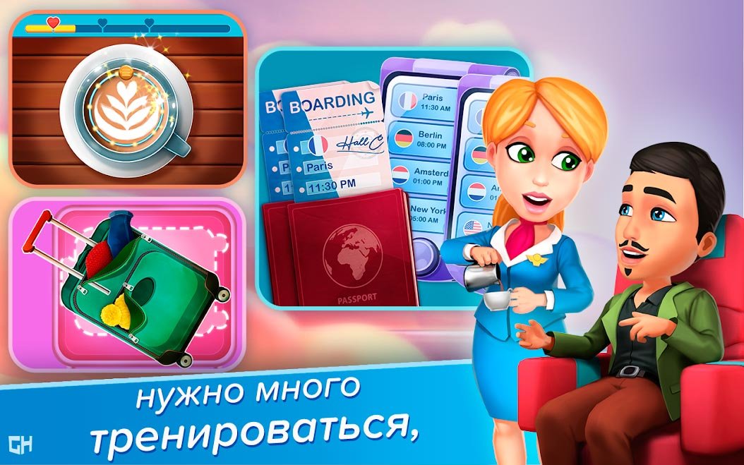 Окунайтесь в эту увлекательную и интересную игру, в которой есть удивительная сюжетная линия. Как только подключитесь к Amber's Airline - High Hopes сразу же станьте хорошим другом для Эмбер Хоуп, главной героиней этой сюжетной компании. Эта девушка мечтает стать самой лучшей стюардессой, и в этом помогать ей будете только вы. Авиалинии Снагфорда нуждаются в такой отличной работницы. Теперь она осуществит собственную мечту и сможет побывать на самых разнообразных островах. Стань одной из лучших стюардесс и летай по разнообразным экзотическим местам. Естественно, что легко точно не будет, потому что придется много думать и решать огромное количество уровней. Первым делом героине нужно будет сдать экзамены и получить допуск на борт авиалайнера. Наслаждайтесь яркой и увлекательной историей, в которой нашлось места романтике и ссорам. Пройдите больше шестидесяти разнообразных уровней, все они относятся к главному сюжету в Amber's Airline - High Hopes и поэтому дарят удовольствие. Дополнительно можно пройти еще тридцать разных уровней и получить дополнительные награды.