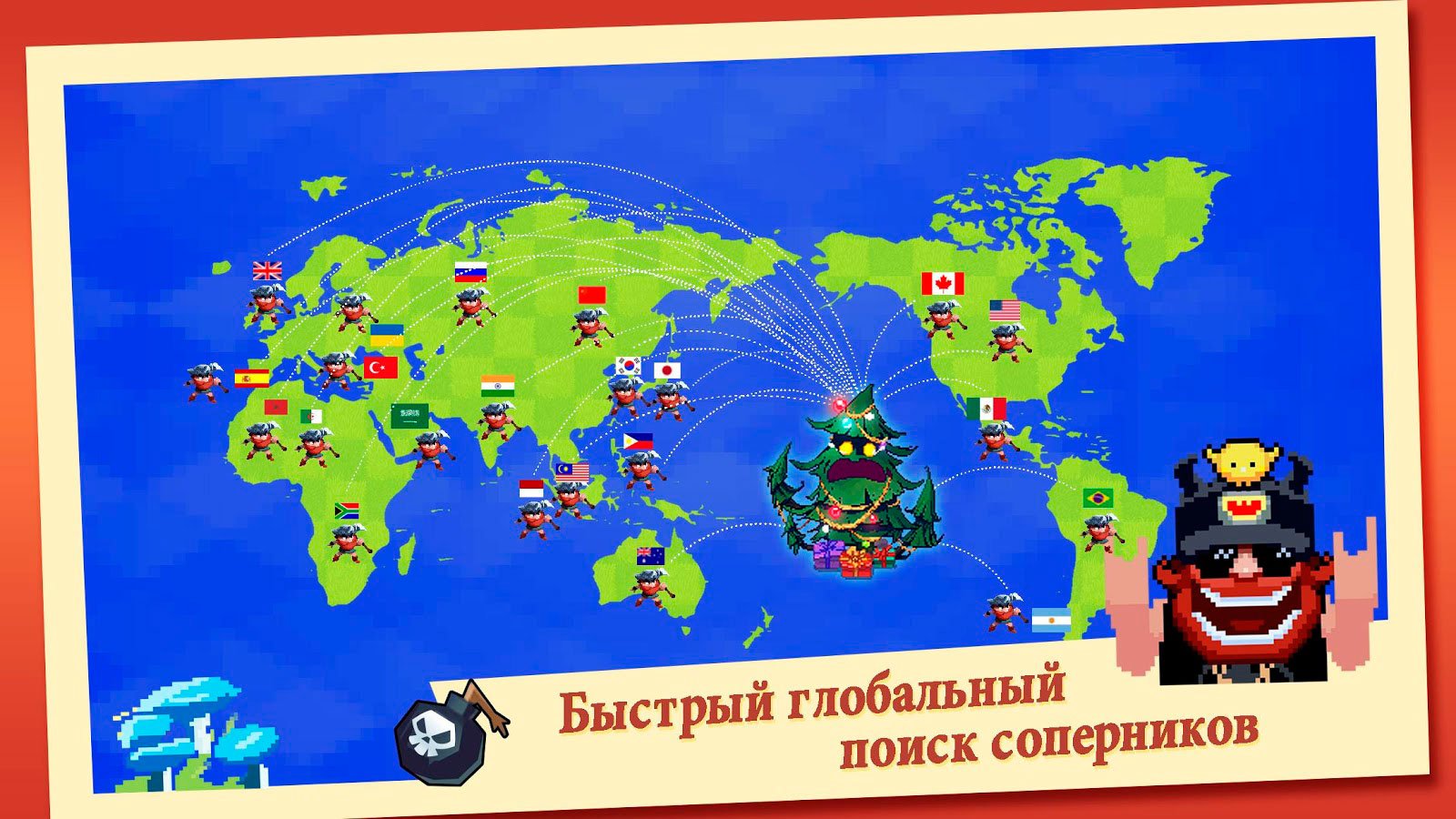 Воспользуйтесь глобальным поиском случайного соперника из разных странах. Даже здесь игрок получит удовольствие, потому что карта, сделанная в реальном материковом виде, покажет расположение всех игроков и их страну. За игрой нельзя будет соскучиться, ведь одновременно играть и чатиться будет легко как никогда. Общайтесь с друзьями и другими игроками и в тоже время наносите сокрушительные удары. Не забывайте вовремя прокачивать своих героев, используя разнообразные улучшения и бонусные предметы. Достигайте больших уровней для заклинаний, которые играют немаловажную роль в битве.Информация об игре