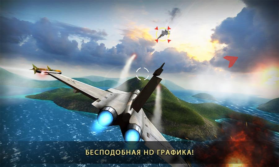 Изображение в игре было основано с самого реального снимка, сделанного спутником. Таким образом, игрок сможет почувствовать реалистичность происходящего в игре. Все ландшафты представлены в мощной трехмерной графике нового поколения. Обязательно попробуйте подключиться к Air Combat OL: Team Match и сражайтесь высоко над землей. Вам должны понравиться эти красивые и яркие пейзажи из тропиков и лесов. Погружайтесь в эти невероятно мощные войны и летайте высоко, где вас не смогут достать соперники. Все текстуры прописаны до мельчайших деталей, а объекты детализированы. От этого воздушного мобильного боевика действительно захватывает дух у игроков со всего мира. Попробуйте взять управление над боевым самолетом и перебейте всех своих оппонентов. Очень интересно будет играть в Air Combat OL: Team Match через многопользовательский режим. Для этого достаточно просто пригласить в игру своих друзей и вместе наслаждаться качественной игрой.