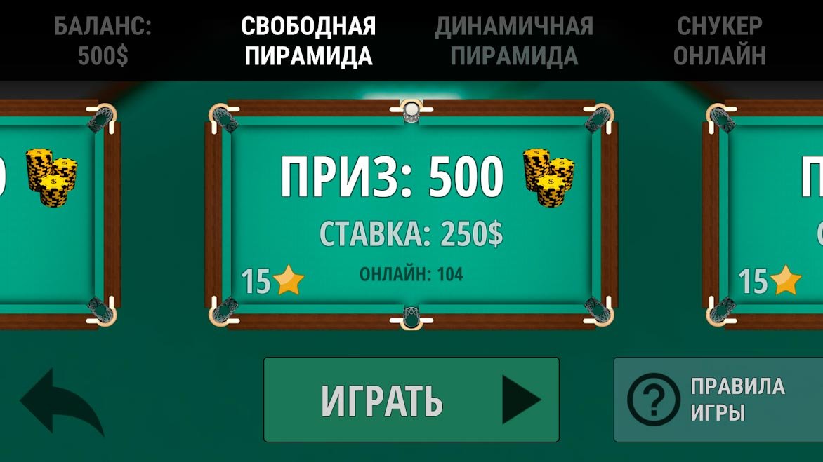 Русский бильярд позволяет соревноваться с игроками по всему миру и, побеждая выигрывать фишки. Они помогут вам после купить лучший кий, и он поможет овладеть преимуществом в каждой следующей игре. Заработайте себе очки рейтинга и поднимайтесь как можно выше, всего в игре есть несколько разных видов снукера с шестью и пятнадцатью шарами. Вы сможете сыграть в любом из них. Очень реалистично воссозданы столы в трехмерной графике. Есть огромные и маленькие. С такими будет очень удобно играть даже с планшетов. Наслаждайтесь конкуренцией и игрой с лучшими профессионалами. Вас ждет огромное количество впечатлений и наград за такую хорошую игру. Станьте первым в списке глобального рейтинга уже сегодня.