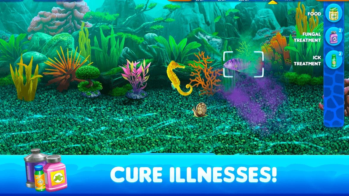 Сам игровой мир выглядит очень реалистично и, погружаясь в него, вам будет становиться все интереснее. Соберите как можно больше рыбок и постоянно обеспечивайте их уходом. Вам будет весело и увлекательно. Получайте первые породы и разводите их. Возможно, уже сегодня у вас появится маленький сом или окунь, а потом вы обзаведетесь первой акулой. Уже сегодня в Fish Tycoon 2 Virtual Aquarium доступно больше четырех сотен разнообразных видов рыб и каждая из них может оказаться в вашем аквариуме. Разблокируйте множество бонусов или обновлений, чтобы сделать магазин еще более красивым и комфортным для посетителей. Если рыбки заболеют, их нужно будет лечить и ухаживать за ними. Все это вызывает пристальный интерес.