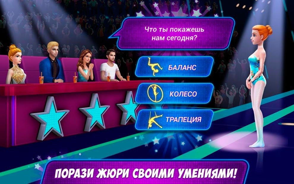 Главной героине очень сильно повезло, ведь ее пригласили выступать на самом популярном шоу в мире, где теперь она может продемонстрировать все свои таланты и возможно станет настоящей звездой. Как только станешь участницей на Звезда акробатики — Покажи, что ты умеешь!, тебя ждет огромное количество тренировок, ведь подготовиться к выступлению будет не так-то просто. постоянно обучай новые элементы трюков, кувырков и комбинаций, чтобы выступить максимально красиво и завоевать доверие публики. Победа заключается не только в отличной выполненном сценарии, но и во внешней красоте. Поэтому нужно будет навести прическу шикарного вида и нанести сногсшибательный макияж. После этого Звезда акробатики — Покажи, что ты умеешь! Миллионы зрителей по телевидению каждый день будут смотреть это любимое шоу, и дарить свои аплодисменты и оценки всем участникам. У тебя должно быть сногсшибательное шоу, которое точно будет воспринято с удовольствием и тогда приз будет твоим.