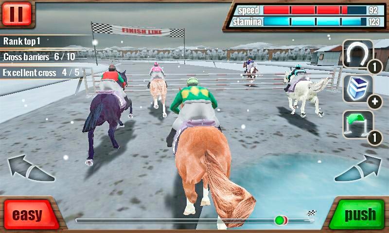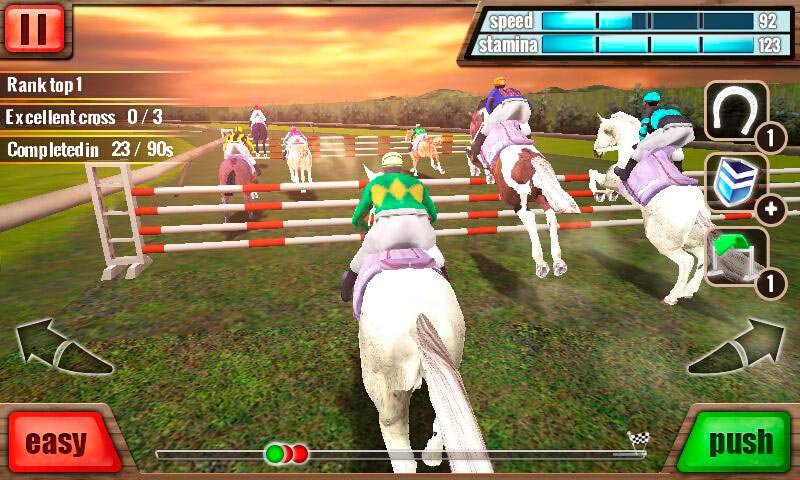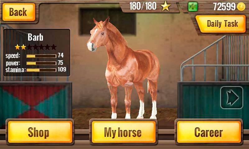 Это самые реалистичные скачки, доступные на мобильных экранах. Вы прямо сейчас можете принять участие в гонках на самых лучших лошадях и постараетесь добиться лучших результатов. Трехмерное качество делает окружающую среду неповторимой, а игроку должно понравиться и звуковое окружение. Если раньше вы могли только ухаживать за лошадьми, то в Скачки 3D - Horse Racing можете участвовать в самых настоящих скачках. Контролируйте управление своим конем и постарайтесь пари каждом заезде показать действительно крутые показатели и поставьте рекорд. Огромное количество уровней, действительно очень много соперников и породистых жеребцов.