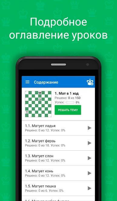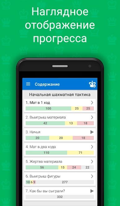 Один из самых опытных и профессиональных шахматистов написал собственную книгу, куда вошло огромное количество стратегий и планов по игре в шахматы. Таким образом, игрок в Шахматная тактика для начинающих сможет пройти целый курс эффективных тренировок, где можно обучиться самым крутым комбинациям. На данный момент этот бестселлер книги был продан в более чем двухсот тысячном экземпляре, а вы можете пройти его прямо со своего мобильного. Этот курс будет очень полезным для начинающих шахматистов, которые узнают про основы такой игры и смогут обучиться более чем тысячам разным упражнениям. Будьте уверены что лучшей тактической игры вы не найдете, тем более она создана по рекомендации лучшего игрока. Шахматная тактика для начинающих будет полезно и для тех, кто уже имеет играть в шахматы. Такие люди смогут отработать в процессе мастерство и обучатся огромному количеству новых методик. Улучшайте собственный уровень и наслаждайтесь качеством сделанного геймплея.Шахматная тактика для начинающих поможет изучить игру