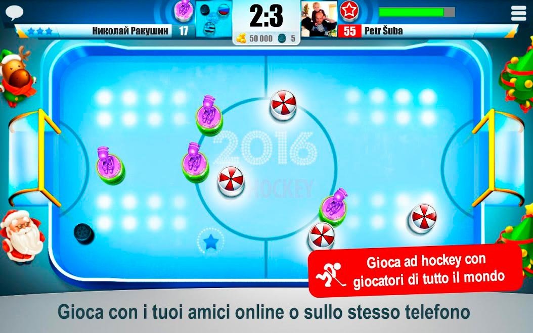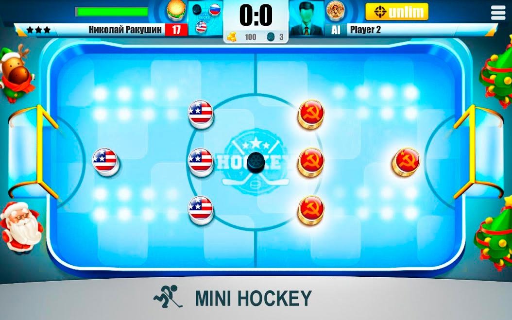 Если стало скучно, тогда вас обязательно выручит игровой процесс Мини Хоккей Чемпионат. Вместе с ним вы сможете сражаться с другими игроками и будете использовать при этом многопользовательский режим. Зарабатывайте в процессе участия в Мини Хоккей Чемпионат как можно больше очков, ведь действует глобальная таблица рейтинга. В ней только самые меткие хоккеисты могут взобраться на лидирующие позиции и станут чемпионами. Наслаждайтесь игрой не только с реальными игроками, но и с виртуальным соперником. Такое соперничество будет максимально напряженным и сложным. Естественно ваши хоккейные фишки должны серьезно отличаться от соперников, а для этого будет необходимо использовать предметы персонализации. Тогда игрок и Мини Хоккей Чемпионат может свободно выбрать цвета и раскраски под флаг собственной страны, чтобы представить виртуальную сборную на мировом уровне. Собирайте все командные цвета и улучшайте свою тактику, потому что только за счет нее можно действительно победить соперников по всему миру.Сыграй с другом в Мини Хоккей Чемпионат