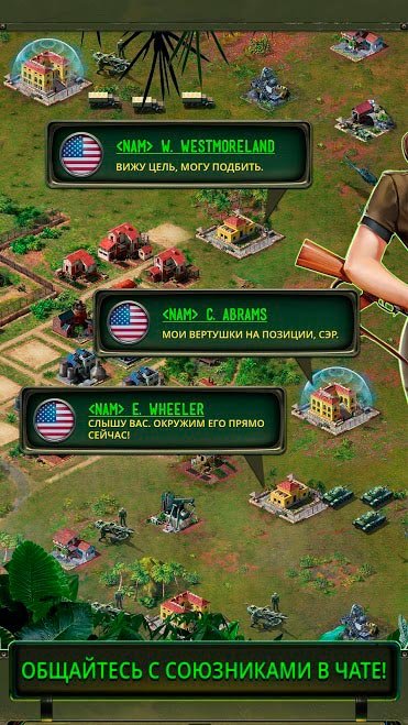 Вам предстоит проверить свои собственные навыки и способности на самой реалистичной военной операции. Отправляйтесь на войну во Вьетнаме прямо сейчас и придумайте свою собственную идеальную тактику, которая поможет разбираться с врагами. Война во Вьетнаме: Взводы сделана в стиле самой реальной тематики военных операций и игроку придется взять на себя роль за всю страну. Постройте свою собственную базу, займитесь организацией ее обороны и начинайте мобилизовать военных. Обучайте их и постоянно тренируйте, чтобы приготовить к самой серьезной войне. Используйте огромное количество транспортных средств, чтобы оказаться на этой войне и смело вступайте в битвы между настоящими игроками онлайн режима. Можете даже пригласить в Война во Вьетнаме: Взводы своих друзей, чтобы вместе создать клан и воевать уже в более масштабных размахах. Вам нужно будет договариваться с остальными игроками, чтобы создать невероятно мощный союз и даже заниматься торговлей.Реалистичная стратегия Война во Вьетнаме: Взводы