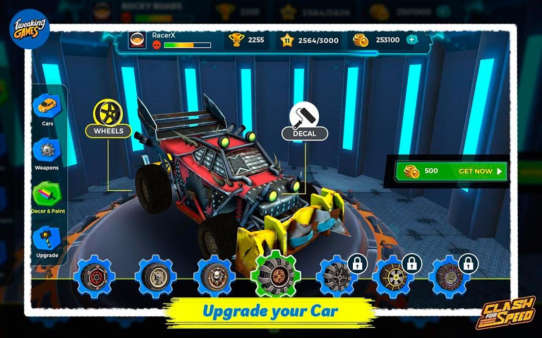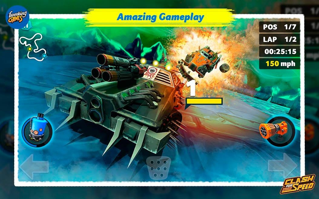 В гараже у игрока может оказаться невероятное количество уникальных и мощных транспортных средств. Садитесь за руль любой машины, но перед этим не забудьте прокачать ее мощным оборудованием и вооружением, чтобы в любой битве владеть преимуществом. В этой удивительной игры вы самостоятельно можете поставить на трассах невероятное количество разных ловушек, которые поймают соперника и уничтожат его транспортное средство. В Clash for Speed – Xtreme Combat Racing огромное множество разных ключевых особенностей, которые сделают игровой процесс интересным и напряженным.