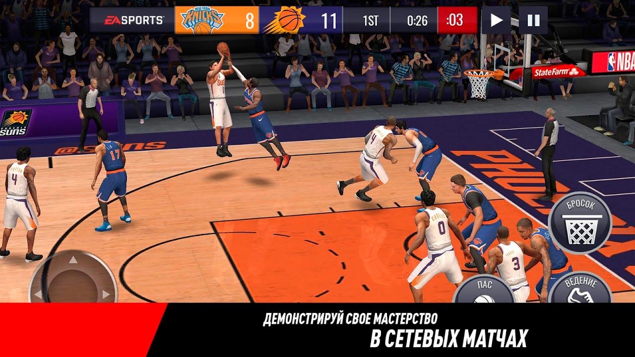 Чтобы достичь максимального опыта и уровня игроку предстоит пройти очень длинную карьерную дорогу. Впереди будет огромное количество проблем и важных матчей против легендарных звезд баскетбола. Постарайтесь сделать все возможное, чтобы о вас заговорили во всем мире. В NBA LIVE Mobile Баскетбол появилась возможность играть через многопользовательский режим и состязаться с лучшими игроками планеты. Естественно в таких матчах будут награды намного выше. Главное как можно лучше подготовиться к предстоящим встречам, чтобы получать преимущество в физическом плане. Крутая трехмерная графика реалистичная физика и атмосфера наполненная реализмом, позволяют быстро окунуться в процесс.