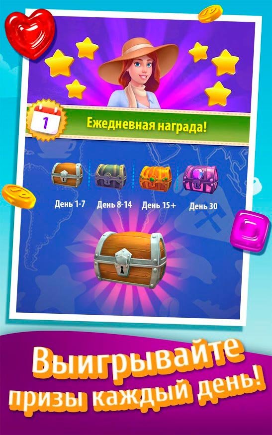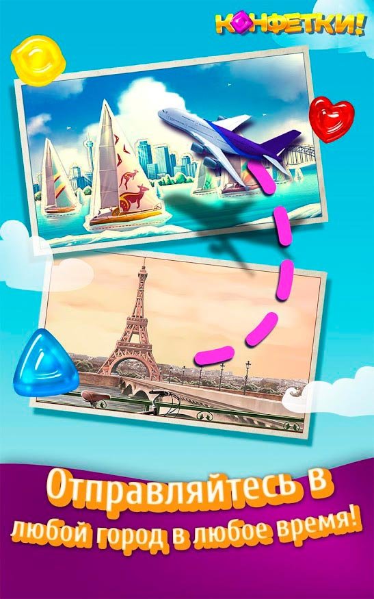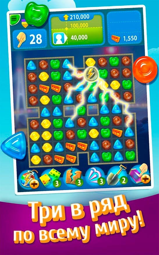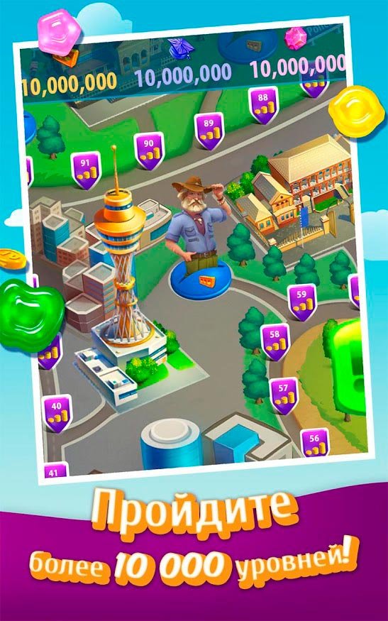 Погружайтесь в одну из самых веселых головоломок, где можно будет получить множество новых впечатлений и навыков. Собирайте комбинации из трех в ряд и продвигайтесь как можно дальше в процессе. Вам предстоит доказать всем что лучше вас никто не разбирается в таком жанре. Конфетки! - бесплатная игра 3 в ряд сделана в потрясающем графическом стиле, что обязательно порадует игроков. Проходите больше сотни потрясающих уровней и наслаждайтесь постоянно меняющейся атмосферой. Собирайте одинаковые конфеты вместе и удивляйтесь бонусам, которые помогут быстрее справиться с линиями. Игроки будут путешествовать по волшебным и сказочным землям, а также посетят королевства конфет. Все это выглядит просто потрясающе. Стройте и развивайте свои собственные миры, где вас будут ждать как опытного архитектора. Получайте возможности для установки достопримечательностей в Конфетки! - бесплатная игра 3 в ряд.