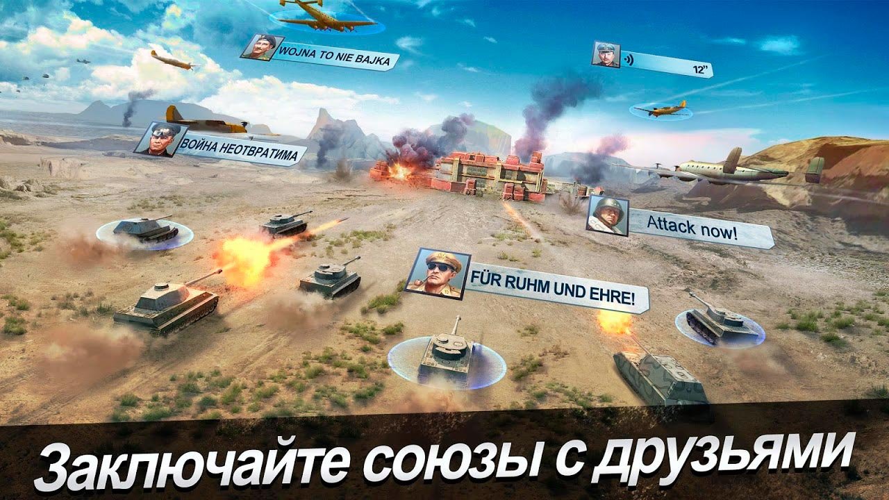 Начните со строительства своей собственной военной базы, где будут размещаться все ваши войска. Это должна быть очень надежная и прочная база, чтобы враги никогда не могли проникнуть внутрь и уничтожить все ваши ресурсы. Приготовьте к войне больше трех десятков самых разных военных элементов и покоряйте этот мир. Игрок в процессе сможет получать огромное количество преимущества, и победа будет неизбежна. Сейчас World Warfare позволяет даже создавать свои собственные военные альянсы, куда войдут друзья, чтобы потом сражаться с другими лигами. Обязательно задействуйте свою уникальную стратегию, потому что она играет огромную роль в процессе прохождения военного симулятора.