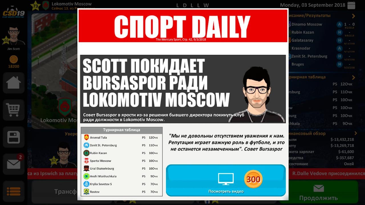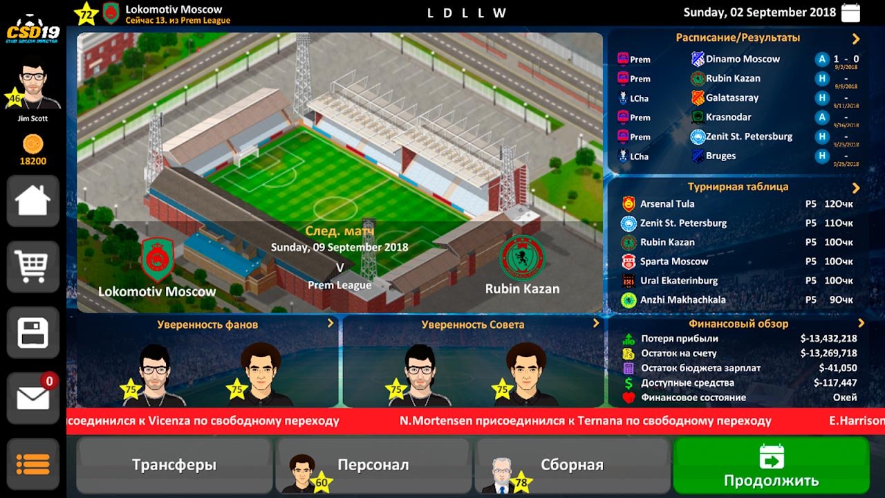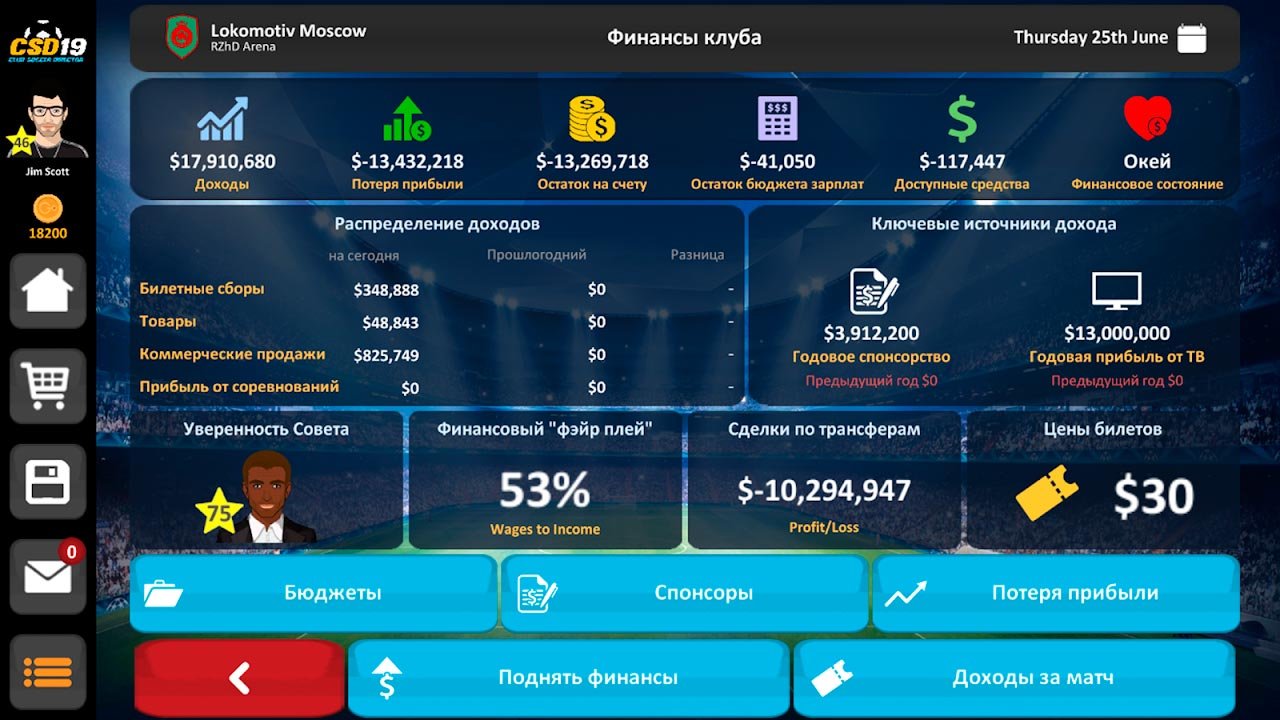 В этот раз футбольный менеджер будет серьезно дополнен обновлениями. Например, на этот раз игроки смогут выбрать клубы из таких добавленных стран как Португалия, Турция, Россия, Аргентина и многие другие. Игрок из Club Soccer Director 2019 может самостоятельно выбрать тот самый клуб, который он так сильно любит и потом пройдет за него огромное количество матчей, сыгранных в разных городах и странах. Добавлено огромное количество лиг из каждой страны и теперь вы можете сыграть за свои клубы из РПЛ, чтобы провести их к мировому величию. Теперь, чтобы победить в матчах, нужно серьезно задуматься над тактикой и сделать так, чтобы она начала быстро приносить плоды. Естественно для этого придется серьезно постараться, ведь думать как менеджер очень сложно. Сформируйте собственную крутую команду, проведите трансферы и набирайте новых игроков. Вам будет доступен огромный рынок с кандидатами на самые разные места в команде. Club Soccer Director 2019 полон удивительных режимов, в которых вы покажите себя как профессиональный тренер.Управляйте своим клубов в новом сезоне Club Soccer Director 2019