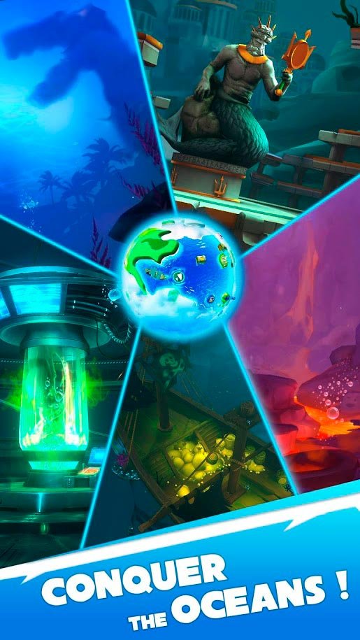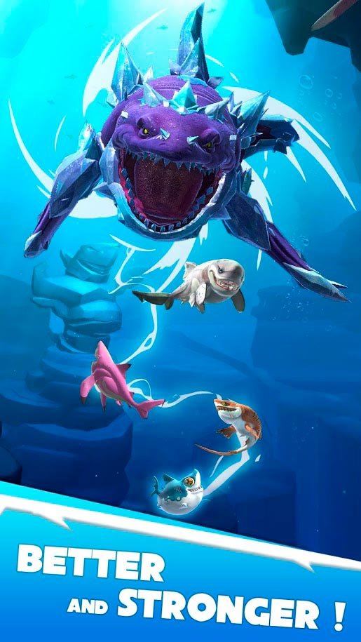 Попробуйте даже самостоятельно создать свою первую акулу, ведь это будет возможно благодаря собственной прокачке навыков. У вас под управлением будет самая главная акула монстр, и уже от нее будут развиваться все остальные. Обязательно пригласите в Hungry Shark Heroes своих друзей, чтобы потом вместе делиться стратегией и новыми особенностями. Придумайте огромное количество вариантов того, как можно будет развивать свою атаку дальше. Руководите большими армиями и наконец, добейтесь лучших результатов. Больше двух десятков разных арен уже доступно для битвы и все они серьезно отличаются. Если нечем будет кормить своих обитателей, тогда попросите помощи у друзей.