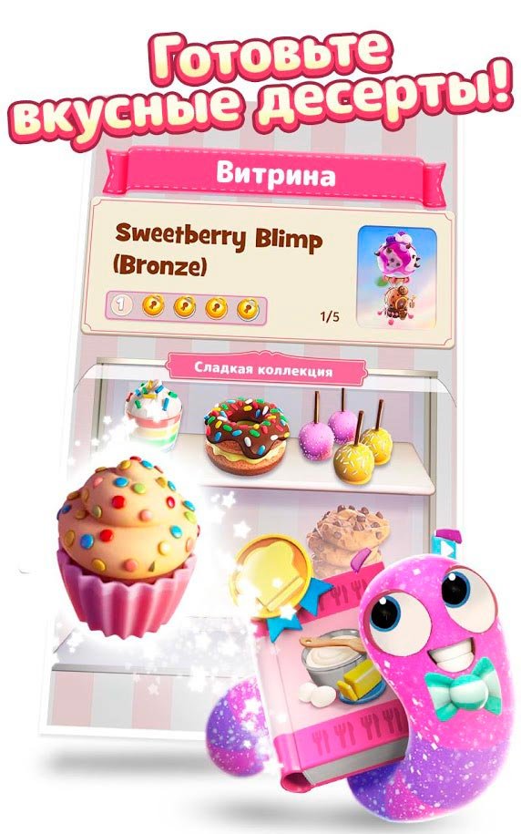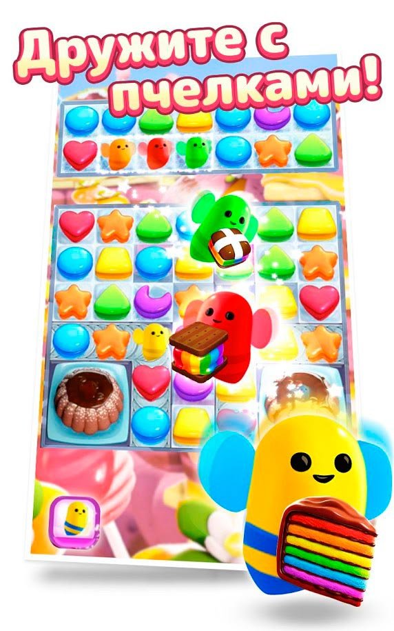 Вкуснольдинки, пчела из желе и еще множество разных бонусных сладостей будет доступно для использования на уровнях. Просто касаниями составляйте вместе вкусные предметы и очищайте игровое поле, пока не доберетесь до следующего уровня. В процессе вы сможете собрать огромное количество разных персонажей, а все они очень веселые. Когда будете заходить в Cookie Jam Blast каждый новый день крутите колесо и доставайте оттуда удивительные бонусы. Более того, подключившись к социальной сети, вы откроете множество новых возможностей и сможете соревноваться со своими друзьями.