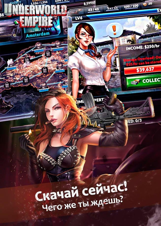 Миллионы игроков уже наслаждаются такой крутой стратегией, и вы можете присоединиться к ним прямо сейчас. Будьте уверены, что будет нереально весело выступать в такой необычной по сюжету и жанру игре. Собирайте команду из самых крутых бандитов и организуйте мощную преступную империю, которая постепенно захватит весь бизнес в этом городе. Ваша империя будет маленькими шагами идти все ближе к мировому лидерству. Первым делом, выбирайте какого типа империю будете продвигать дальше. Это могут быть преступные синдикаты, мафия или обыкновенная уличная банда. После этого можете начать свое первое дело, которое уже должно принести вам денег. Смело ведите своих бандитов на перестрелки против других картелей в режиме реального времени, развивайте боссов и отстраивайте новые здания. Игроку в Underworld Empire одновременно нужно будет держать управление над всеми видами бандитов, чтобы добиться максимально положительных результатов.