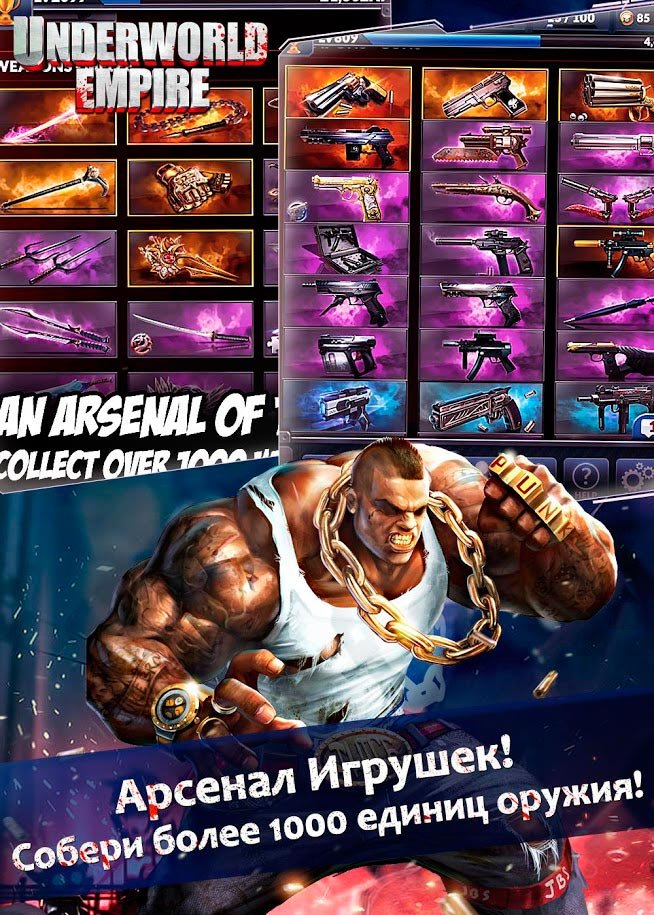Тонны самых разных предметов будут доступны вам уже сейчас, и все они делятся на разные категории. Собирайте элитные и легендарные предметы, чтобы усиливать мощь своей армии бандитов. В игре Underworld Empire присутствует множество видов вооружения и даже транспортных средств. В общем, процесс будет настолько эпичным, что вы вряд ли сможете от него оторваться. Решайте разные квесты, выполняйте дополнительные задания, собирайте новых бойцов и продвигайтесь на вершину, где можете стать авторитетом. Поставьте во главе самых крутых главарей, чтобы им подчинялись все бандиты и тогда будет проще добиться результатов.