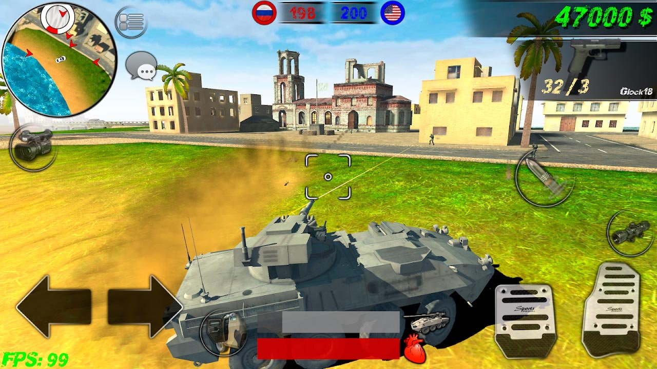По всему миру много любителей огнестрельного оружия, больших бронированных машин и конечно же тактического боя. Теперь все вышеперечисленные блага современной компьютерной игровой индустрии, доступны на большинстве мобильных устройств, отвечающих минимальным требованиям. Разработчики игры Land Of War так же не забыли уделить должное внимание качественной проработке интерфейса взаимодействия игроков в многопользовательском режиме. В боевом противостоянии огненной мощи могут столкнутся сразу несколько людей владеющих разными языками: English, Русский, Portugues, Español, العربية, Türk, Deutsch, Français, 日本語, 中國. Но не смотря на уникальный многопользовательский режим, игроки могут играть в одиночном режиме, без подключения к сети интернет. Также к выбору мобильных геймеров доступно 3 карты, отличающиеся между собой рельефом, постройками и расположением военной технике, на которой можно передвигаться по огромной карте. Но это еще не все, на выбор доступно 3 разновидности команд, каждая имеет свои преимущества. Большой ассортимент боевого оружия.Land Of War – прими участие в ожесточенных схватках