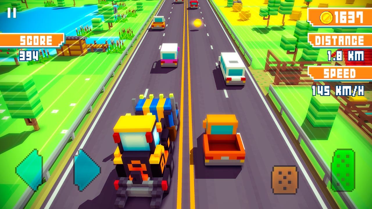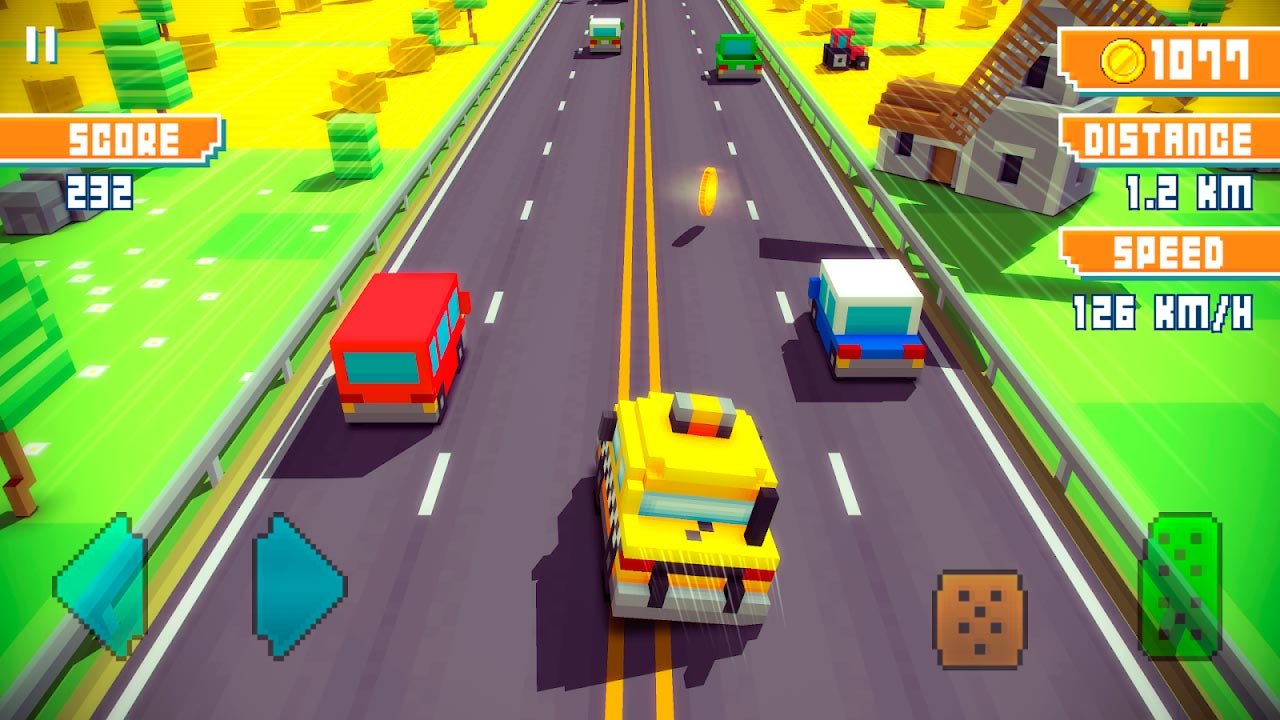 Блочная графика уже давно выходит в популярные игры, и поэтому вам будет очень интересно попробовать сыграть за водителя. Отправляйтесь в сумасшедшие гонки по трафику, которым загружены дороги. Игроку предстоит научиться маневрировать по дорогам, избегать встречных автомобилей, стараться аккуратнее переезжать железную дорогу, а за успех получать части новых машин. Собирай в своем гараже в Blocky Highway: Traffic Racing огромное количество машин из блоков, чтобы потом наслаждаться поездками на них. Путешествуйте по самым разным трассам, выигрывайте ценные призы и наслаждайтесь качественной атмосферой. Собирайте как можно больше монеток на трассе, получайте удовольствие от такой красивой трехмерной графики и выигрывайте ценные призы. Как только вам выпадет новая коробка, ее можно будет открыть и достать оттуда эксклюзивный автомобиль. Blocky Highway: Traffic Racing подарит только приятные эмоции игрокам, и они смогут набрать сумасшедшую скорость на своем автомобиле.