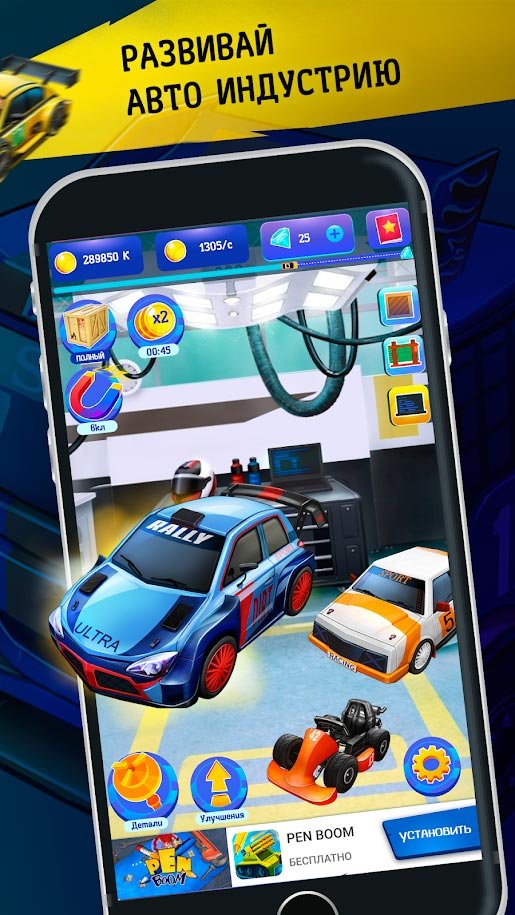 Прямо сейчас в твоем мобильном может появиться крутой кликер и от него безумно сложно будет оторваться. Прокачивай уже имеющиеся тачки, продвигай их и улучшай скоростные показатели. Впереди будет ждать огромное количество уровней и испытаний, а после получения наград станет возможно улучшить машину и сделать ее самой быстрой. В Эволюция Тачек: новый кликер действительно очень удобное управление, от использования которого можно будет получить удовольствие. Наслаждайся геймплеем и собери свой самый первый автомобиль, на котором получишь первую награду.Информация об игре
