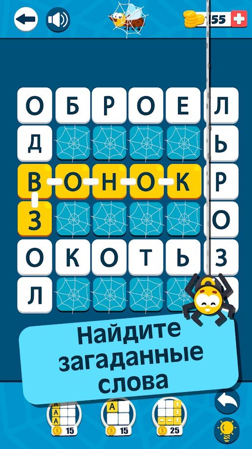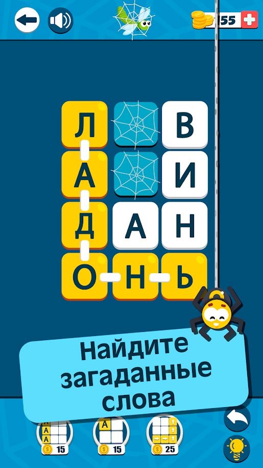 В процессе прохождения новых уровней игроку предстоит спасти больше двух десятков веселых друзей. Все это делается в динамичном геймплее и в очень приятной графике. Механика игры тоже сделана на современном высоком уровне, а благодаря огромному количеству разных подсказок, станет заметно проще выходить на новые уровни и наслаждаться уже ими. Действительно Паутина: Найди Слова считается одной из самых увлекательных и веселых игр в слова, от которой можно получить безумное количество удовольствия и от нее будет сложно оторваться. Даже дети должны быть в восторге от такой красивой головоломки.Информация об игре