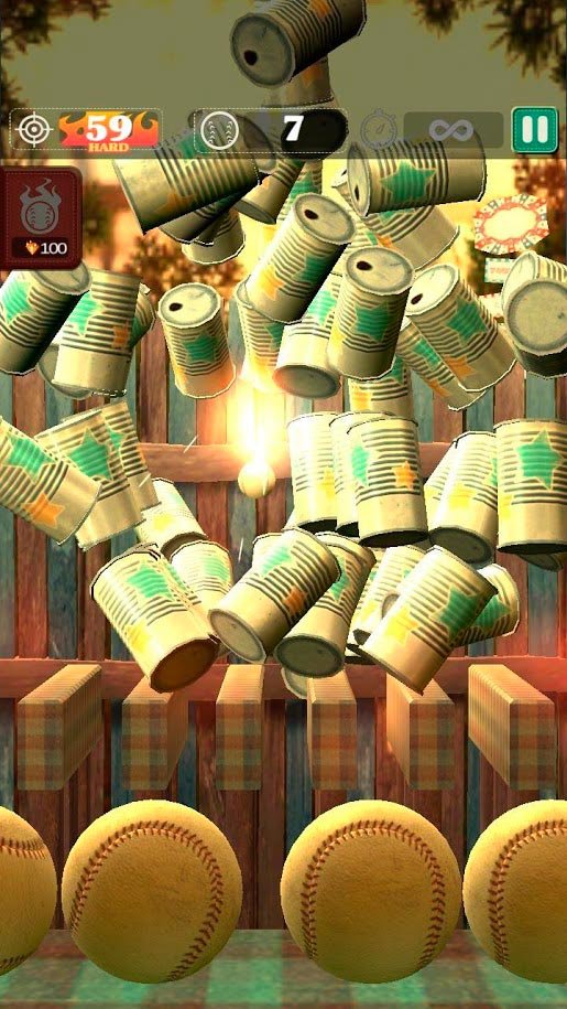 Возьмите мячик и как следует прицельтесь, чтобы запустить его точно по банкам и сбить их все. Сбивайте как можно больше целей на следующих уровнях и переходите как можно дальше, чтобы набрать огромное количество очков и стать лучшим в результатах. Участвуйте в самых разнообразных этапах и собирайте там очки, чтобы очищать новые уровни от находящихся на поле банок. Естественно, с каждым новым уровнем будет еще труднее и вам предстоит использовать все свои навыки и способности. Играйте в нескольких режимах, где сможете завоевать главные награды. Открывайте в процессе как можно больше достижений и переходите в новые этапы, где вас ждут задания куда интересней. Сыграйте в режиме ограничений по ударам мячом и наслаждайтесь результатами. Кроме того, вы сможете принять участие в особом сложном режиме, где процесс ограничен по времени. Сломайте всю посуду в Хит и нокдаун, перебейте фрукты, папки, парашюты, барабаны и еще кучу других предметов. Выбор действительно огромный и он практически безграничный.