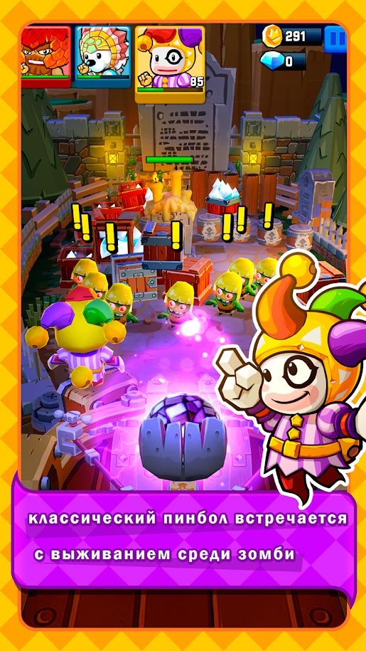 Займитесь путешествием по такому грандиозному миру и постарайтесь найти здесь новые потрясающие приключения. Zombie Rollerz - Pinball Adventure уже получила огромное количество наград и достижений, благодаря которым стала очень популярной. Именно поэтому вы обязательно должны сыграть в нее и добиться лучших результатов. Только в этом мобильном приключении игрок сможет играть одновременно в веселый пинболл и таким образом уничтожать весь вирус. Занимайтесь тем, что будете собирать огромное количество новых героев и использовать их с целью дальнейшего выживания. Они помогут подавить инфекцию, которая собралась в этом злом и таком жестоком мире. Прокачайте каждого из персонажей до максимального уровня и наконец, насладитесь настоящим и живым пинболлом. Естественно в Zombie Rollerz - Pinball Adventure будут огромные орды живых и сложных мертвецов, которых нужно будет одолеть. К тому же процесс не потребует от вас сложных действий, и простыми кликами вы сможете пройти множество испытаний.