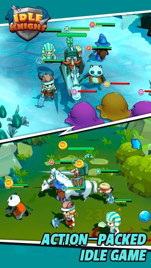 Никакого напряжения и тем более стресса от этой увлекательной игрушки. Если у вас на телефоне появится Idle Knight - Fearless Heroes, то тогда в любой момент сможете включиться в сражения, даже когда у вас не будет под рукой интернета. Если есть желание, можете в любой момент переключиться на режим многопользовательской игры и вызвать на поединок случайного рыцаря или своего друга. Один раз на бой можно призвать не больше пятерых рыцарей и вместе с ними научиться сражаться. Путешествуйте через подземелья, по магическим темным местам и постоянно сражайтесь и улучшайте свой лагерь, ведь от этого зависит судьба.Информация об игре