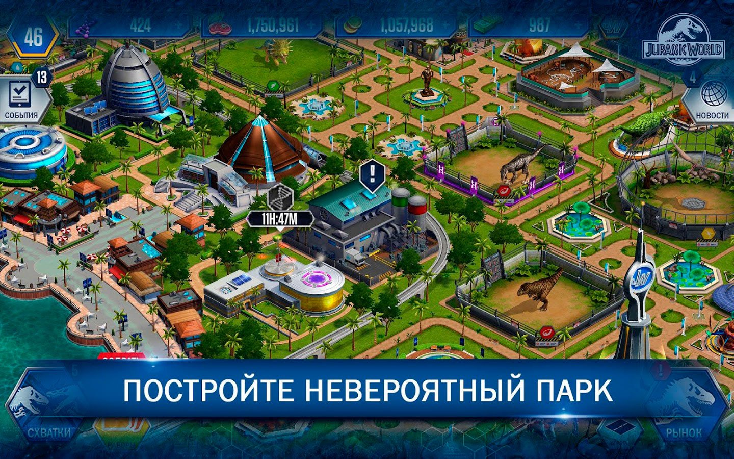 Когда сможете скачать Jurassic World на андроид начинайте переписывать природу и ее законы на новый лист. Постоянно исследуйте остров и собирайте новых динозавров, которых нужно будет вырастить для боев. Всего уже сейчас игрок сможет обнаружить и отправить в свою коллекцию больше 150-ти уникальных видов этих монстров, готовых на всю ради побед и сражений. Постройте свой собственный Юрский парк с помощью доступных возможностей и сооружений. Здесь будет начинаться история развития армии динозавров. Улучшайте не только самих монстров, но и здания, а также украшайте парк декорациями. Все это было даже в самом фильме, а теперь доступно вам в игре.