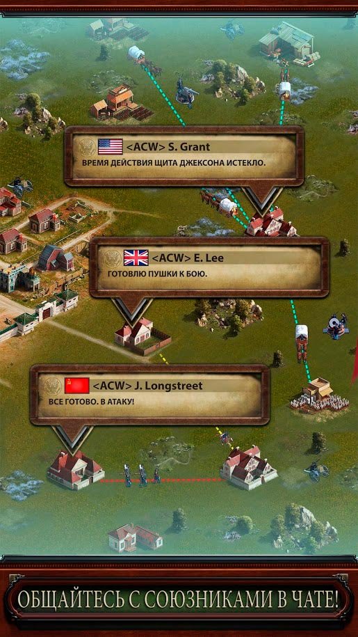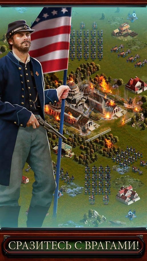 Все любители истории должны обратить внимание на такую потрясающую стратегию, ведь только в ней, вы сможете очень близко познакомиться с временами войны в США. Очень реалистичный игровой процесс, в котором вы сможете встать во главе этой истории и познаете весь мир того времени изнутри. Вооружайтесь и мобилизуйте собственную армию, после чего сможете участвовать в битвах между двумя разными армиями. Выбирайте, на какой стороны в War and Peace: Civil War начнете свое продвижение и приготовьтесь играть через многопользовательский режим. Тут вас будут ждать тонны игроков в режиме реального времени, и они все жаждут сражений против вас. Соберите вместе с друзьями свой собственный альянс и потом вместе с командами будете готовы получать удовольствие от участия в войнах. War and Peace: Civil War требует от военного командира создать идеальную тактику войны и стратегию, чтобы переходить быстро к активным действиям и побеждать врагов.