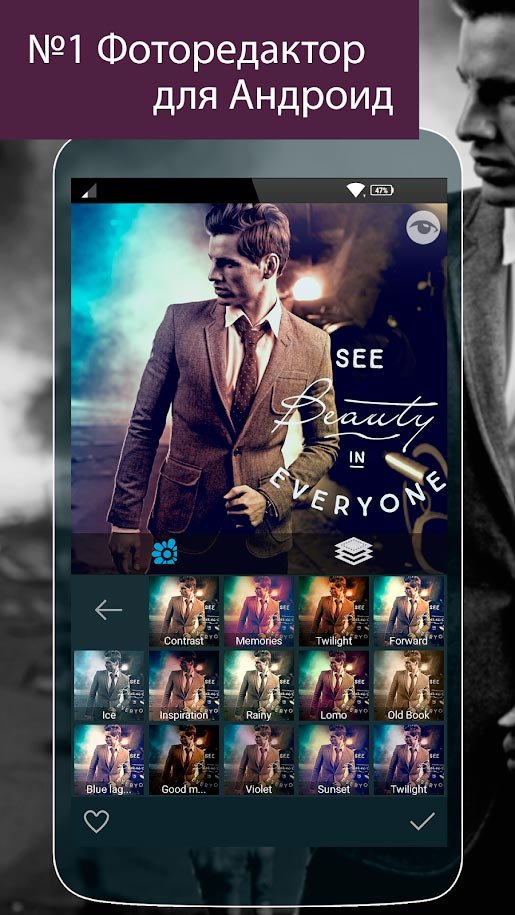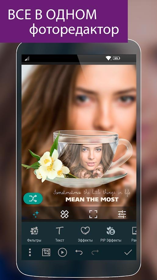 Это не просто какое-то приложение для вашего мобильного, вы получите вместе с Photo Studio PRO мощнейшую мобильную фотостудию, где собрано невероятное количество разных возможностей и режимов. Воспользуйтесь этим мощнейшим редактором, где сможете серьезно изменить кадры, сделанные в повседневности, и получится просто шикарный шедевр. Воспользуйтесь фильтрами, прибавляйте к фотоснимкам эффекты и даже создавайте потрясающие коллажи, чего так не хватает в остальных инструментах. Добавив стикер к фото своего любимого или родного человека, вы сможете придать снимку немного веселья. Иногда так получается, что нужно срочно использовать редактор, но для этого нужно ехать домой или искать персональный компьютер. Именно в такие моменты на помощь приходит Photo Studio PRO и создает ваши фотографии, превращая их в настоящее волшебство. Особенно вам необходимо испробовать в деле эффект картинка на картинке, чтобы удивить свое воображение.