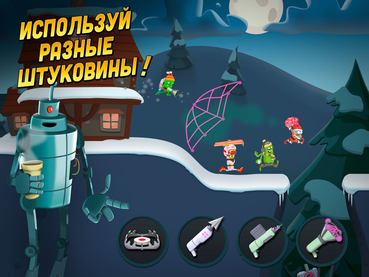 В приложении Zombie Catchers вас ждет уйма веселых моментов. Для поимки зомби предназначено множество интересных приспособлений и ловушек. С их помощью вы сможете быстро обнаружить любого мертвяка и начать на него охоту. Если вы думали, что зомби безмозглы и медлительны – вы сильно ошибались. Для того, чтобы угнаться за этими прохвостами, нужно весьма постараться. Поэтому арсенал оружия и приспособлений для поимки этих тварей столь широк.