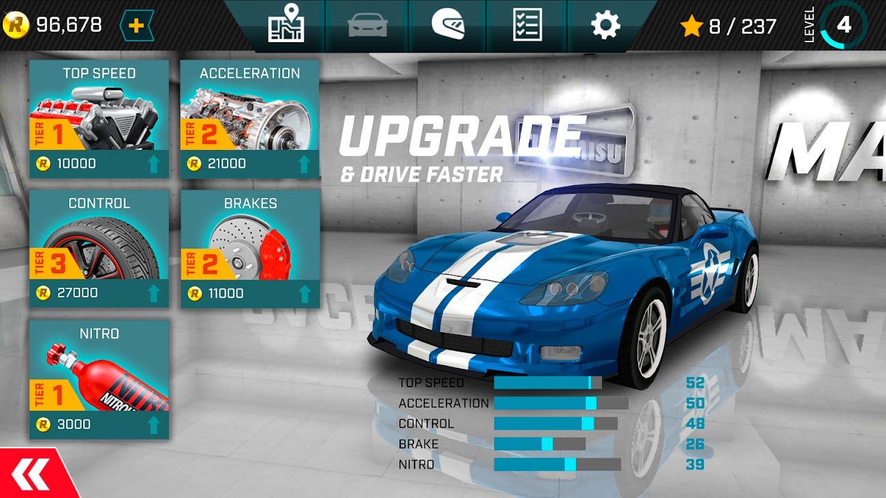 Благодаря стараниям пользователей игроки получают возможность полностью изменить внешний вид своего транспортного средства. Обновляйте его дизайн и делайте его совершенным. Не забывайте про внутренние характеристики, настраивая двигатель и ходовку. Пусть в Race Max все узнают про вашу машину, как про самую скоростную в мире. Крутая трехмерная графика изображения и многопользовательский режим, в котором играть могут абсолютно любые пользователи.Информация об игре