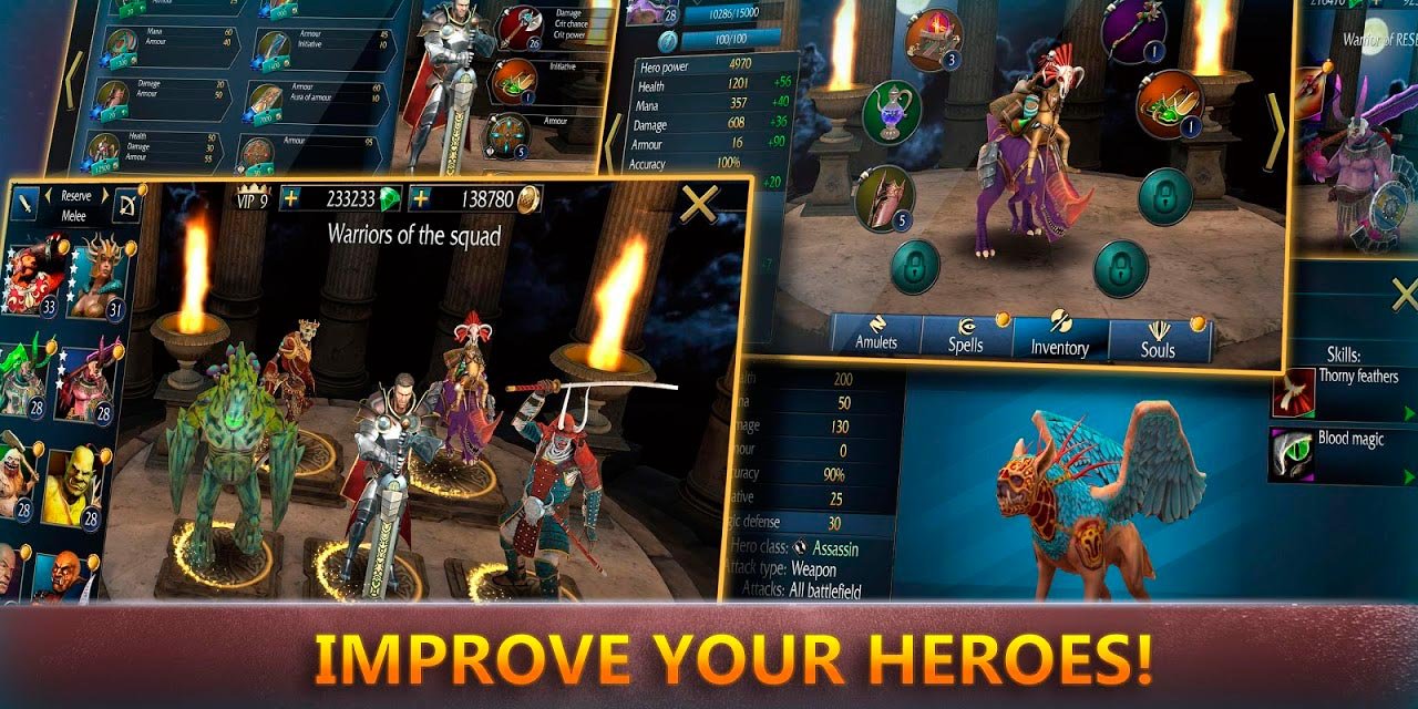 Эпичные битвы ждут новых героев, которые будут способны сражаться с самыми крутыми и мощными врагами. Путешествуйте по миру и подключайтесь к многопользовательскому режиму, чтобы сразиться с легендами магической атмосферы. Прямо сейчас снаряжайте собственного героя и подходите к сражениям в режиме реального времени. Нужно постоянно прокачиваться в Invictus Heroes и увеличивать уровень своих героев, чтобы прокачать его до максимального. В каждом мире есть ресурсы, которые помогут улучшить боевой потенциал в вашей команде.Сотни потрясающих героев воюют