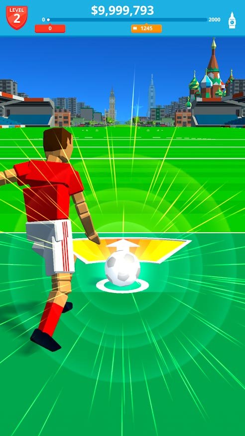 Приготовьтесь бить по мячу не просто со всей силы, а делайте это как можно точнее. Для этого момента игроку необходимо будет выбрать идеальный промежуток времени, чтобы нанести удар и получить от этого удовольствие. Смотрите за Soccer Kick и за тем, как будет лететь ваш мяч. В процессе прохождения новых локаций необходимо будет обновлять данные своего футболиста, и покупать новые мячи. Станьте свидетелем самых идеальных мест со всего мира и возможно, вскоре вы окажитесь где-нибудь в космосе и уже там будете пытаться стать лучшим среди мирового рейтинга.